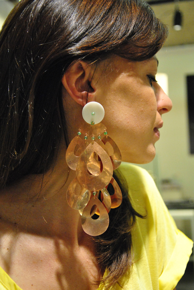 Tutto si crea, nulla si distrugge, tutto si trasforma, ecco come nascono i gioielli di Patrizia Fratta, che utilizzando anche materiali riciclati realizza stupende collane o orecchini con rame, ma anche plastica e pietre. Quello che colpisce di questi gioielli è la leggerezza, grandi,vistosi, divertenti, unici, ma assolutamente privi di peso, grazie alla scelta di materiali innovativi, il tutto totalmente realizzato a mano dall'artista.