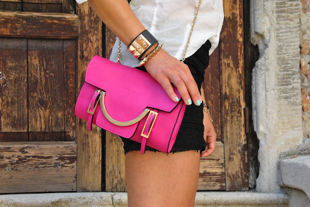 Mancano pochi giorni al mio compleanno e il mio ragazzo si sveglia di notte in preda agli icubi e tutto sudato. Da sei anni che stiamo insieme, per sei volte si è visto ritornare tra le mani il regalo che aveva preso per me. Sì perchè noi fashioniste siamo un pò complicate, non è che se ci regalate la borsa o la scarpa ci accontentiamo, no, noi vogliamo proprio quella che abbiamo visto e strappato dal giornale dal dentista, quella che non costa mai meno di uno stipendio e che immancabilmente non vendono dal fruttivendolo sotto casa. La borsa è un pò come un biglietto da visita, un lascia passare alle feste, quella che ci fa sentire meglio anche se siamo vestite in tuta. Oggi ispirata dal post su Grazia.it in cui trovate le 50 borse più belle dell'autunno-inverno ho raccolto gli scatti delle mie borse, tratte da alcuni dei miei outfit post, partendo dalla Falabella una delle mie preferite a quella più cheap di Mango. Ogni borsa è la compagna delle mie avventure quotidiane, pezzo fondamentale di ogni mio look, come questo che vedete qui sotto che ho già scattato ma che ancora non vi ho mostrato con l'ultima arrivata, la clutch di Michael Kors. Buon fine settimana ragazze, vado a mandare qualche altra foto al mio ragazzo e a proporre un fine settimana romanticissimo a Milano, magari dentro alla Rinascente, così almeno per una volta non avrà scuse e la borsa dei miei sogni sarà mia.