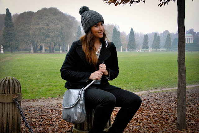 The only way to make it less gray autumn is wearing something shiny, like my brand new Aura bag and slippers glitter. Yesterday afternoon I took two steps to the park and I found the perfect place to take some pictures with and without a coat, so we bloggers endure all temperatures. I wanted to show the good maxi jersey and my last bag, the aura in the model Nina suede silver glitter. if you like you can see all the designs and colors are also available on Facebook and follow all the updates on Twitter. I appreciate very much this brand all Italian, a young designer who is enjoying a great success because it has created a very cool, high quality and at a fair price. For the rest dell'outfit I chose to wear slippers, perfect for a stroll in comfort. As inevitable accessories of my ring Tring Brosway, a maxi necklace and cap is cool, you will have one down?