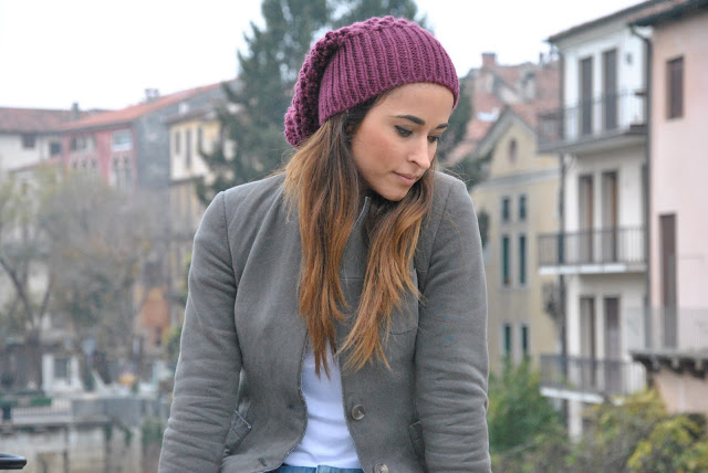 The jeans of this outfit I love them, I love the style and lightly distressed boyfriend. The boyfriend jeans are very trendy, besides being convenient and suitable a little at all because it does not wrap around the leg too. Must be brought to so, a bit down, soft, with risvoltino and to make them more feminine with a nice heel. Since it was not particularly cold I wore a blazer hot-edged jersey ianux and tshirt with skulls and roses Maimadì. The wool cap is one of those things that you will see often on my head, especially as it is a must for the season. For accessories, I chose once again Tres Jolie Brosway and a belt with studs flat. I hope you like it, waiting for your opinion, have a nice week.