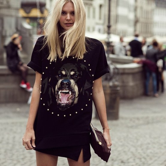 Continua il trend delle felpe con le immagini di animali feroci. Tra le tantissime versioni con lupi, tigri e quant'altro, due sono le mie preferite, la Jaws limited edition di Dondup e la Rottweiler collection di Givenchy e per una volta ogni tanto, questo post è dedicato anche a boys che stanno leggendo. La limited edition di Dondup prende spunto dalla celebre locandina del film dello Squalo e oltre alle felpe si declina in tshirt e abiti. La Rottweiller di Givenchy ha come protagonista un ferocissimo cane e anche in questo caso disponibile, si fa per dire visto che è introvabile, sempre come felpa o maxi maglia. Ebbene sì, dalla felpa di Kenzo in poi è tornata la animal mania.
