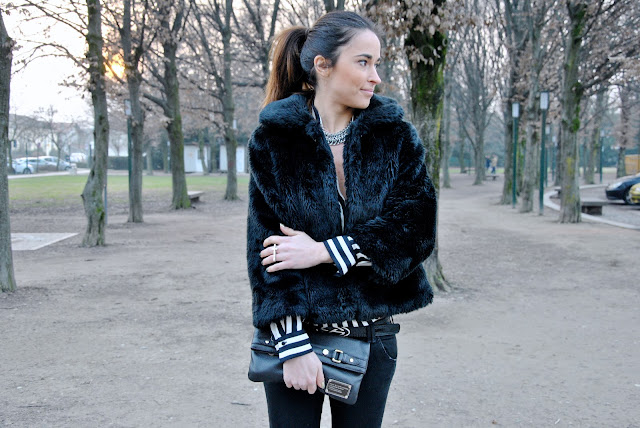 Black and white stripes, I do. It 's the trend of the moment and of course a black & white striped blouse could not miss in my closet. When I spoke of many lines I have written to ask how to match them exactly. Personally I prefer a outfit in which there are only two colors, although some might dare abbinandoci colored skinny pants or a skirt always colored, but not fantastia. I chose this look for a dinner. The shirt highlight of this outfit, is particular, shorter front and long back. In addition to wear with pants lends itself to be worn with a skirt, also a high waist. Few accessories: big necklace and ring Ring & Ting with the cross.