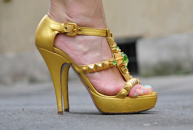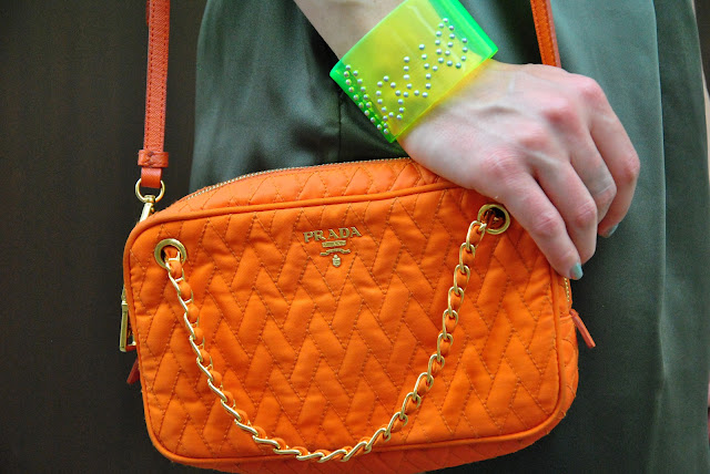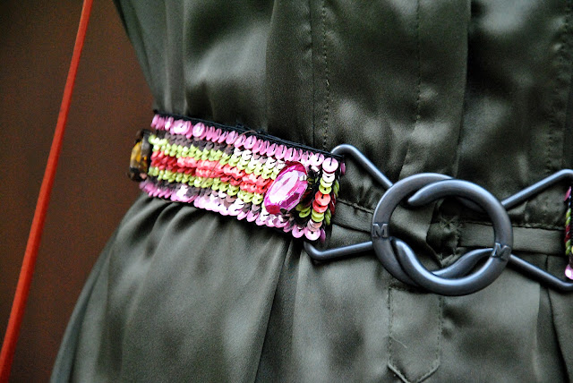Buongiorno e buon inizio settimana! Eccoci qui con un nuovo outfit, tutto giocato sui toni del verde che ho indossato la scorsa settimana per un party allo store DAD. All'abito in seta verde ho abbinato i sandali dorati di Prada con le pietre verdi e una cintura di Missoni con paillettes e pietre colorate. Questa cintura è la mia disperazione perché perde letteralmente i pezzi per strada. Da quando ce l'ho potrei contare sulle dita delle mani quante volte l'ho messa proprio perché le paillettes si staccano, solo allacciandola, però era perfetta su questo abito. Per dare un ulteriore tocco di colore ho abbinato la borsa a spalla arancione di Prada e il bracciale fluo Aboutme jewels che vi avevo mostrato QUI . Aspetto i vostri pareri, un bacione.