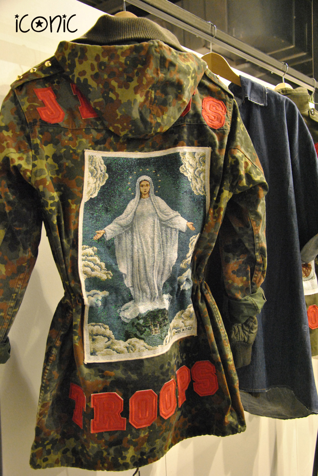 Not everyone knows that usually takes place during Fashion Week also the White Trade Show in Zona Tortona, a show in which I expose many brands, more or less known, most Made in Italy. It 'sa fair is only open to buyers and the press, and bloggers of course! Also this year I was in for a ride and it's really nice to browse through the box and find new ideas, new brands, new products, is pure creativity. Among the many I stopped to admire the leaders of ICONYC, a brand young, very street, inspired by the style of metropolitan New York, with great attention to detail. The parka with the iconic image of the Virgin Mary on his back was my favorite piece.