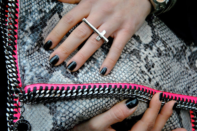 Sabato passato tra White e qualche sfilata. Per l'ennesima giornata impegnativa a Milano, soprattutto per i miei piedi, ho deciso di optare per un look comodo e soprattutto caldo. Un look che a me piace tantissimo e che mi rispecchia perfettamente. Tante volte mi vedete con i tacchi, però per il giorno io preferisco la comodità e oggi vi mostro un modo molto trendy per esserlo: un jeans comodo e strappato, delle sneakers borchiate, un blazer nero reso più caldo da un gilet in pelliccia. Il tocco di colore anche questa volta è dato dagli accessori, un cappellino di lana rosa fluo e la borsa di McCartney con il profilo in tinta. Al mio polso tanti bracciali, tra cui quello con i charms di Miluna che avevate intravisto sul mio instagram e il sunrise di Brosway.