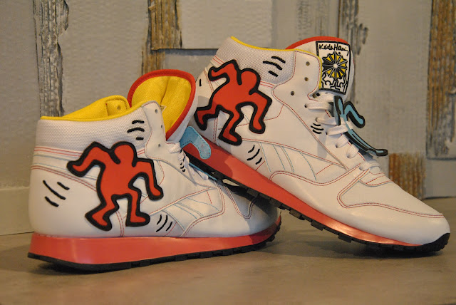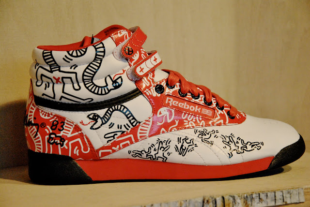 A me la primavera mette una gran voglia di cambiare scarpe e una volta ogni tanto non parlo di tacchi alti che fanno venire male ai piedi al solo pensiero. Stagione nuova, sneakers nuove. Tra le tante proposte in circolazione, le Reebok per Haring ispirate alle opere più celebri di Keith Haring mi hanno fatto fare un salto sulla sedia. E' la pop art da portare ai piedi. I modelli iconici di Reebok diventano delle tele per ospitare gli omini stilizzati che hanno reso famoso questo artista unico al mondo. Magari le avevate già notate ai piedi di Baby K, nell'ultimo video assieme a Tiziano Ferro che trovate qui sotto. Io ho avuto modo di vedere l'intera collezione qualche giorno fa allo showroom Reebok e mi sono piaciute un sacco.