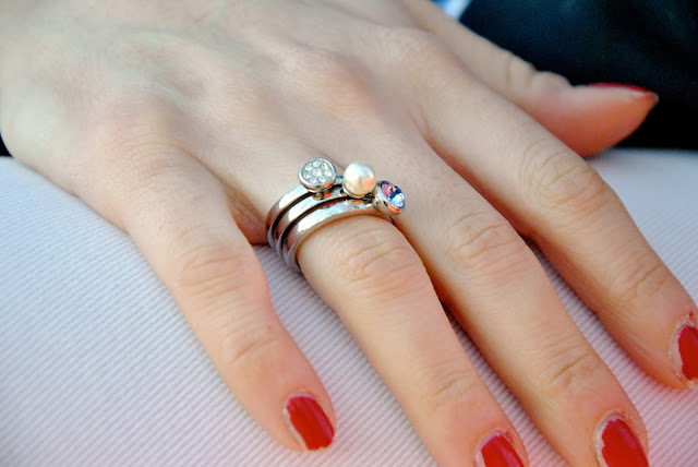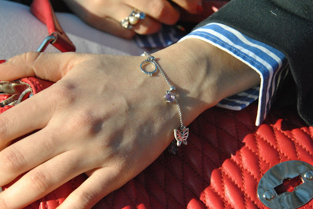 Sometimes I receive the email in which some girls ask me advice on how to get dressed for a specific occasion, so the other day when I looked in the mirror I thought this look would be perfect for a job interview or a 'examination at the University. Under the jacket I paired a navy blue and white striped shirt, jeans and loafers cream brand new, I opened with a walk in the park. Compared to the dancers, who are not really my passion, I prefer a comfortable moccasin, then this is even better than a slipper, how is soft, but also very trendy, you saw that beautiful soles? (sorry for the mud!) It 'a piece of the collection spring summer Voile Blanche. A very preppy look, completed by scarf in cashmere lightweight but essential in these days of transition between winter and spring. I bought it on Lacrom, I do not know if you know this site, but I recommend it, you can find lots of clothing and accessories by emerging designers exclusively Italian. I fell in love and I am making some clutch has to decide which one to take, they are all beautiful. For this look instead I chose to wear my soft postman red Zanellato. For accessories, I have not loaded too much the outfit, I simply put the bracelet with charms Miluna the Luna collection and the ring of Tring Brosway that color was the missing piece of the whole look.