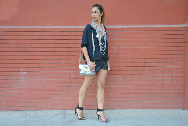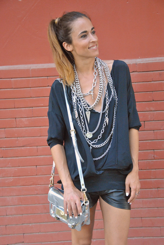 Today I show you my outfit for the party of LuisaViaRoma a few days ago in Florence. I could tell you about the event through Facebook and instagram, but otherwise zero photos, yet it is so unbelievable but true. The party was set in the Boboli Gardens in Florence, in a very picturesque but also very dark for my camera. The real photographers who roamed the park had the headlights to be able to take some pictures, I imagine, so I left out the idea and I enjoyed the party with my Tuscan friends and my blogger friends that I finally saw him after many months. For the look that had to be themed Grunge Glam I opted for a total black look, with soft leather shorts and shirt. To do the whole outfit is the multi-strand necklace, a small loan from the Maison Franco Pianegonda for the occasion has given me the honor of wearing a vintage piece Pianegonda a few years ago had been created and worn even by Laura Pausini in one of his videos. A multi necklace chains of different sizes, shapes and lengths, with typical charms of the Maison Franco Pianegonda, of course silver. I I fell in love as soon as I saw it, also because it was just what I wanted. To complete the look a shoulder bag silver.
