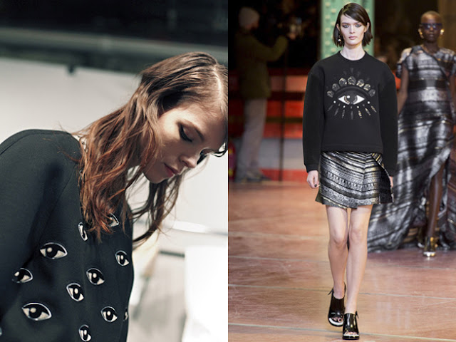 Per i trend io ho un certo occhio. Che battuta scontata!! Ho occhio anche per quelli che saranno i trend che invaderanno il web e le strade delle fashion week di ogni angolo del globo. E' da un pò che non faccio che imbattermi in questa felpa, con un grande occhio e ho pensato che dopo quella con la tigre, sarà lei la regina indiscussa del nostro inverno. Cose da fashion victim e che gli uomini non sopportano. Perchè di vederci con le felpone non li immagino molto entusiasti, credetemi. Resta il fatto che Kenzo con questa felpa con un grande occhio non è proprio il primo, ma qualcosa di simile si era già visto da nella collezione di Au Jour le jour, ma anche Dior e tra gli accessori ad esempio di Delfina Delletrez. Se proprio non sapete resistere al richiamo del trend sappiate che la felpa , come quella qui sopra, viene 210 euro. Che dite, prendere o lasciare?
