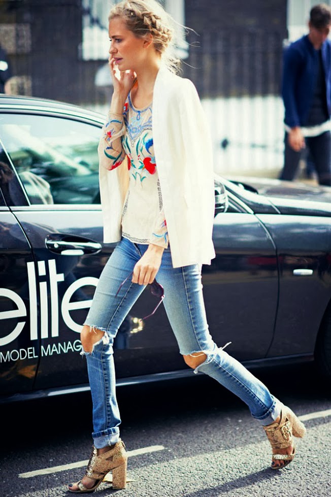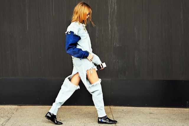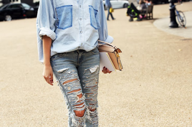 Il jeans strappato non è mai passato di moda e in questi ultimi anni saranno cambiati i lavaggi e le vestibilità ma ne abbiamo sempre avuto uno dentro l'armadio. Il trend di questo autunno li vuole non solo strappati, ma praticamente a brandelli. Su skinny o boyfriend jeans e rigorosamente strappatissimi sul ginocchio, deve sembrare quasi che siate cadute dalla moto con i vostri pantaloni preferiti e abbiate fatto una scivolata proprio sulle ginocchia. Ancora non ho capito se così tanto strappati mi piacciano, ma l'idea di crearmene un paio da sola mi attira molto. Non mancano poi su youtube i tutorial in cui da tutto il mondo vi insegnano una tecnica per farli anche voi. Allora via con le prove, tirate fuori qualche vecchio jeans per avere meno sensi di colpa in caso di errore e cominciate a tagliuzzarli, con il benestare di Mr Diesel o Gas , mal che vada sarete pronte per un pò di nuovo shopping.