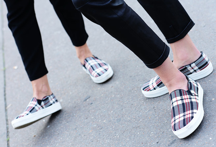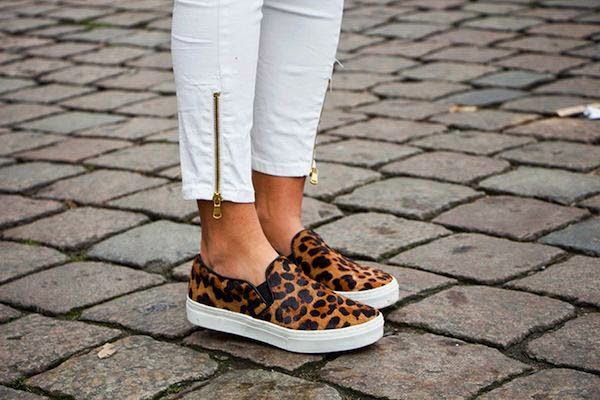 Cerchiamo di dare un nome ad un trend, questa primavera si chiama SLIP ON SNEAKERS . Perchè stagione che vai, tendenza che trovi. La primavera 2014 vede l'invasione di questa scarpa, che in realtà esiste da moltissimo tempo, indossata in primis dai veri skater, perchè comoda e senza lacci, ora da tutte le fashioniste del mondo. Le più trendy a mio avviso sono senza ombra di dubbio quelle maculate, ma ne esistono di diverso genere, quello col pizzo o tartan, a stampa animalier o pitante o con platform. Ammetto di non averne ancora indossata manco una, semplicemente perchè non mi è capitato di trovarne di particolarmente belle nella mia città, ma giuro che rimedierò presto. Forse le prime ad essere state avvistate qualche mese fa sono state le Vans for kenzo . Le mie preferite rimangono le maculate, come quelle della prima foto, ma lo sapete che ho un debole per questa stampa, sono o non sono l'erede di Moira Orfei? Ad ogni modo le vedo molto bene indossate con dei jeans super skinny o dei boyfriend tutti strappati, un pò meno con abiti e gonne, ma sono certamemte una valida alternativa ai tacchi e alle orrende ballerine.