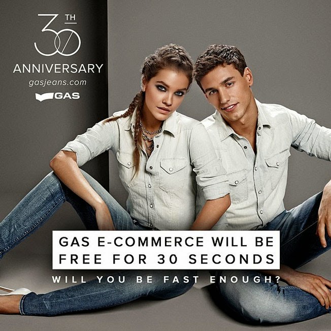 Avete mai sognato di entrare in uno shop online e prendere tutto quello che volete senza pagare nulla? Io sì!! Allora per noi sognatori, in occasione del suo 30esimo anniversario GAS ha inventato l'evento perfetto. Per trenta secondi il suo shop on line sarà gratis e potrete arraffare tutto quello che volete. Non dimenticate però prima di iscrivervi all'evento, dopo aver fatta la registrazione sarete pronti per giocare. L'evento italiano si terrà l' 8 MAGGIO alle ore 15.30 . Trenta secondi di fuoco. La cosa divertente è che potete anche allenarvi ad essere velocissimi, con una simulazione sul sito. Io ci ho giocato per un'ora l'altro giorno, non voglio assolutamente perdere, me li voglio usare bene questi 30 secondi.
