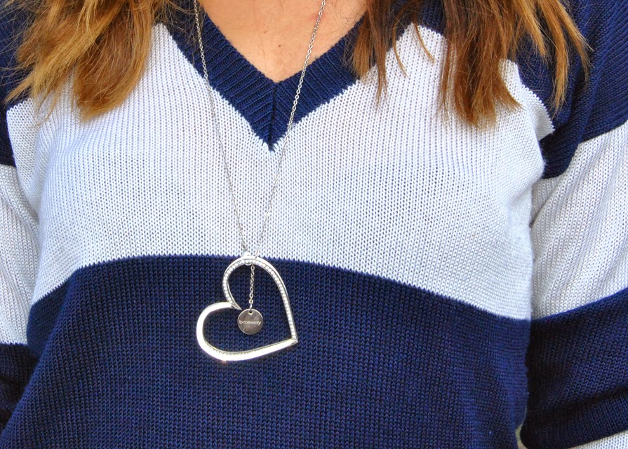 I told you that I was getting a set for the bell-bottom jeans and so, wish granted, I had my jeans. A few days ago I was shopping at Noventa di Piave Designer Outlet, if you follow me on instagram you will have definitely seen my morning of shopping. You should know that these days there is a special promotion, Denim Icons: on a wide selection of garments or jeans of blue color, then shoes, accessories, bags ... there are offers and discounts ranging up to 50% by outlet price. The shopping so it is still cheaper, but you have until October 26, hurry! Returning to me, I purchased these flared jeans, because I think they are the real trend in denim. After you have carried for years the skinny and some uncapped season the boy-friend and super soft, it is now time to paw. I like them because they taste the 70's and then a little bit because they're good at all. Combined with a beautiful high heels, wedges please leave them by the wayside, give centimeters and soaring. So for me to have a nice Yeah, must have! I have them combined in a simple way, with a striped sweater, vintage-inspired eyewear and my postman Zanellato of suede. Unique accessory necklace collection Brosway Frame of two hearts overlapping embellished with cubic zirconia.