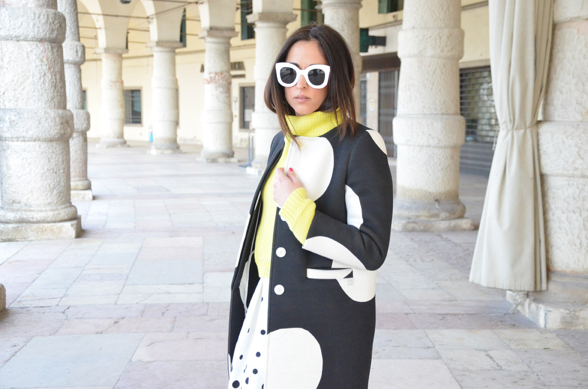 Le stampe sono uno dei trend primaverili, prime fra tutte le bolle, meglio ancora che sono enormi, come quelle che vedete nel mio cappottino di Douuod Woman , brand di cui vi avevo parlato anche la scorsa settimana, vi ricordate, a proposito di giacche a vento. Questo è anche uno dei look che avevo indossato durante la fashion week a fine febbraio, ma riesco a mostrarvelo solo ora. Il cappottino è in neoprene e lo trovo perfetto per questo periodo dell'anno, da abbinare anche a jeans o abitini, molto versatile.