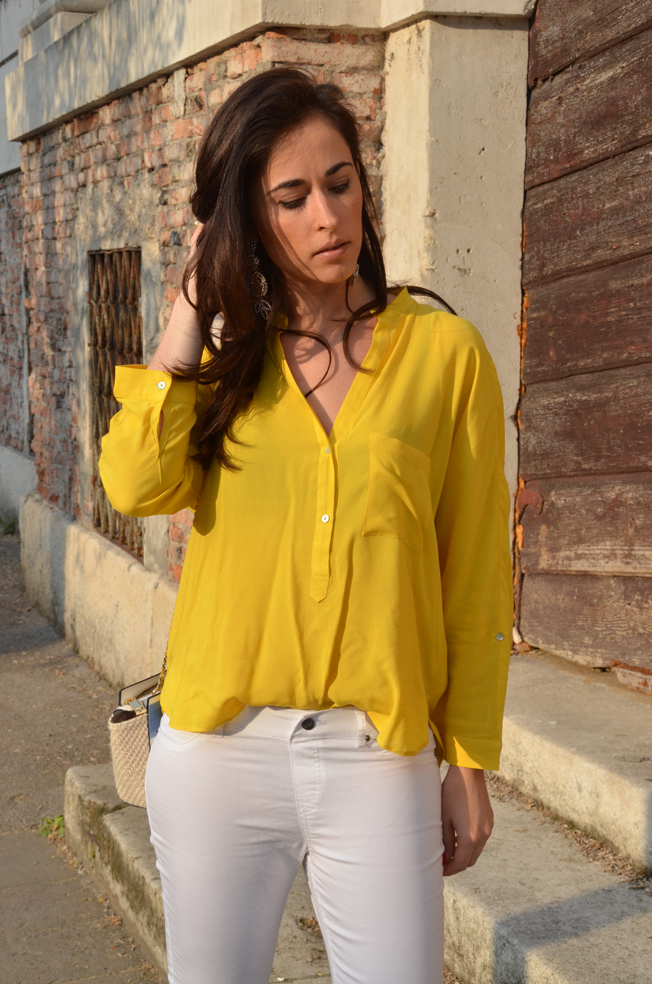 Ho abbinato una camicetta piuttosto basic gialla ai miei nuovissimi leggings di Goldenpoint.