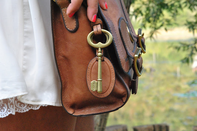 As promised here is a new outfit, to show a bag that I love and use often lately in their free time, my messenger of Fossil. It will surely many views around, of different sizes, materials, with the closing hook or with two belts to buckle, which in reality hide under a magnet to open and close more quickly. The postman is a very practical day bag, large, also useful for students, as it is also very large. There are also some smaller models, I've seen some fluorescent, you can bring in the evening, perhaps with a total black look. I chose to wear it with this outfit very casual, with a dress lace details and biker boots ankle. Only habit the wreath on my head. Come on, I'm not crazy, in fact I was dying to put this crown, and given the setting of the photo seemed perfect. In fact I have only used it at night for a theme party 70s.