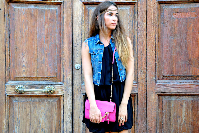 che le metto c'è sempre qualcuno (il mio boy o le mie amiche) che se la ridono alle mie spalle, quindi me la fanno togliere. Finalmente venerdì ho potuto indossarla, senza farmi tanti problemi. Veniamo al look. Un abitino nero non dovrebbe mai mancare nei vostri guardaroba, perché è estremamente versatile. In questo caso è bastato unirlo ad un gillet in jeans con dettagli borchiati, una borsa tracolla e le scarpe dal tacco non molto alto per renderlo informale, dal gusto un po' grounge. Dopo mesi ho rimesso le mie adorate Valentino Rockstud, che nei giorni estivi avevo abbandonato in fondo alla scarpiera. Sono senza alcun dubbio tra le mie scarpe preferite in assoluto. Le ho viste anche maculate e in vernice nera, mi stava venendo un colpo, ma credo che, se non ho voglia di vendere un rene, per un bel po' rimarranno semplicemente un desiderio. Unico gioiello che ho scelto di indossare il mio Tring di Brosway. Attendo i vostri pareri su questo outfit.