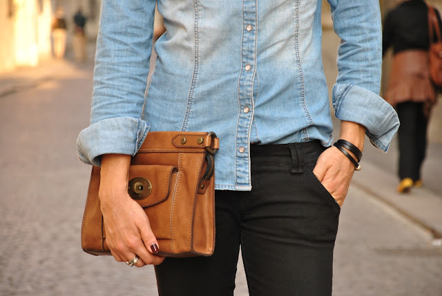 Ultimamente mi piace mixare colori, tessuti e stampe, perché trovo che il risultato sia meno scontato e d'effetto. Nell'outfit di oggi avrei potuto indossare scarpe e borsa più semplici o dello stesso colore, invece ho proprio pensato che una scarpa pitonata si sarebbe sposata alla perfezione con la mia nuovissima clutch Fossil. A fare da sfondo a questo outfit la mia città, Vicenza che questo week end è stata letteralmente invasa dai turisti, grazie alla riapertura della Basilica Palladiana e alla mostra 'Raffaello verso Picasso' che non vedo l'ora di visitare pure io. Tornando all'outfit sulla camicia in denim ho indossato una maxi collana con pietre verdi. La clutch Fossil era perfetta col mio look un maschile, in contrasto con le scarpe un po' aggressive, ma molto femminili. Per i capelli ho scelto un raccolto, creando da sola un bun, spero vi piaccia l'insieme, io adoro questo outfit.